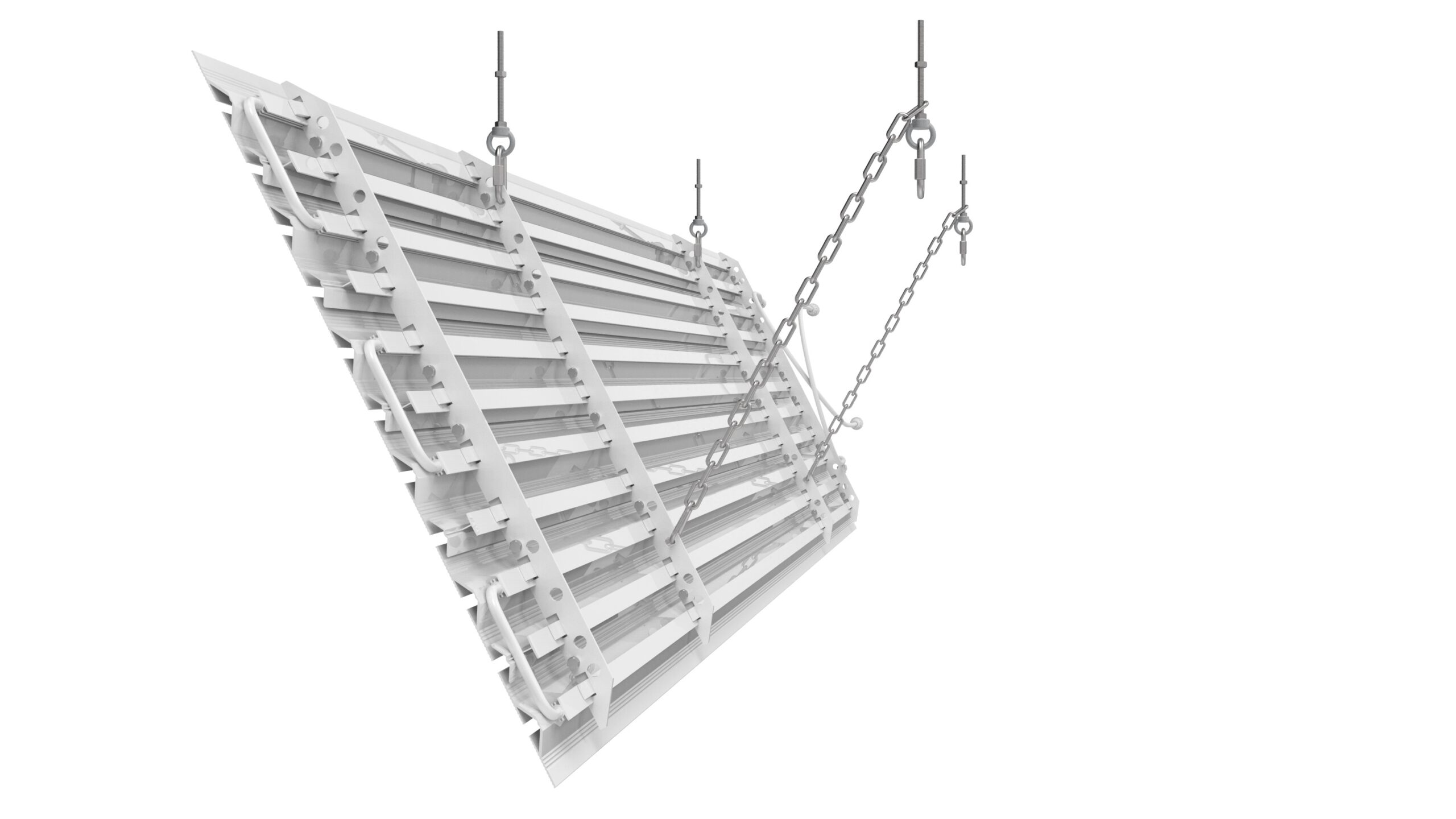 - Flexibel in Baubreite und Baulänge, problemlos integrierbar in abgehängte Decken (zum Beispiel Rasterdecken)